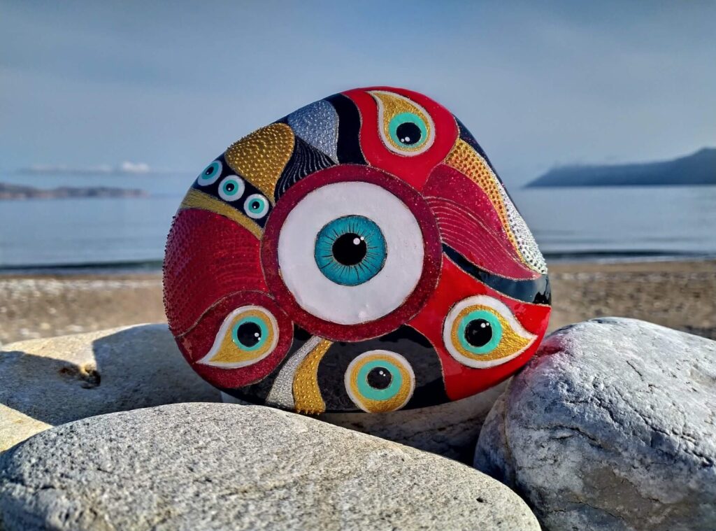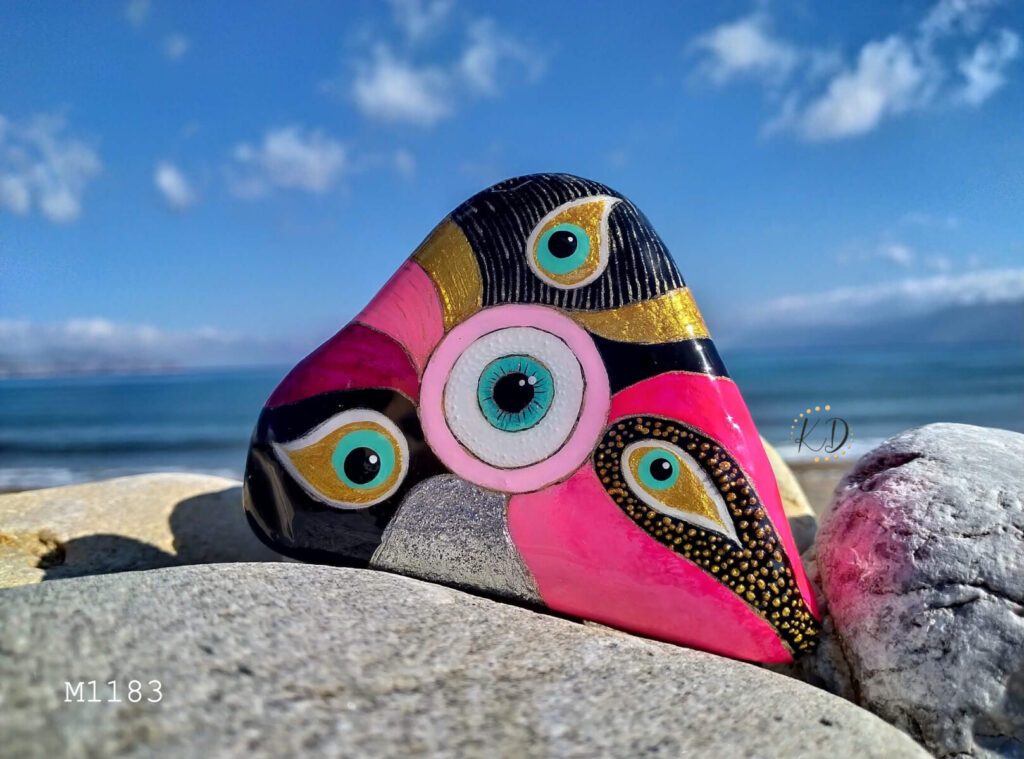 Every hand painted sea stone from Crete is carefully selected from the island’s beautiful shores and lovingly transformed into a unique piece of stone artwork.