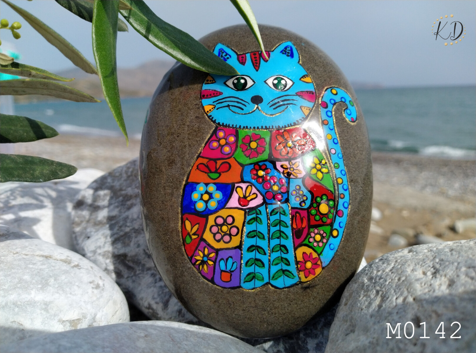 Say hallo to this cheerful little kitty,hand-painted on sea stone!Bursting with bright colors and a big personality,this joyful cat is here to spread smiles and sunshine wherever it goes.With a quirky charm and plenty of cattitude,it’s the purrfect companion for Your desk or shelf.One-of-a-kind,just like every fabulous feline.