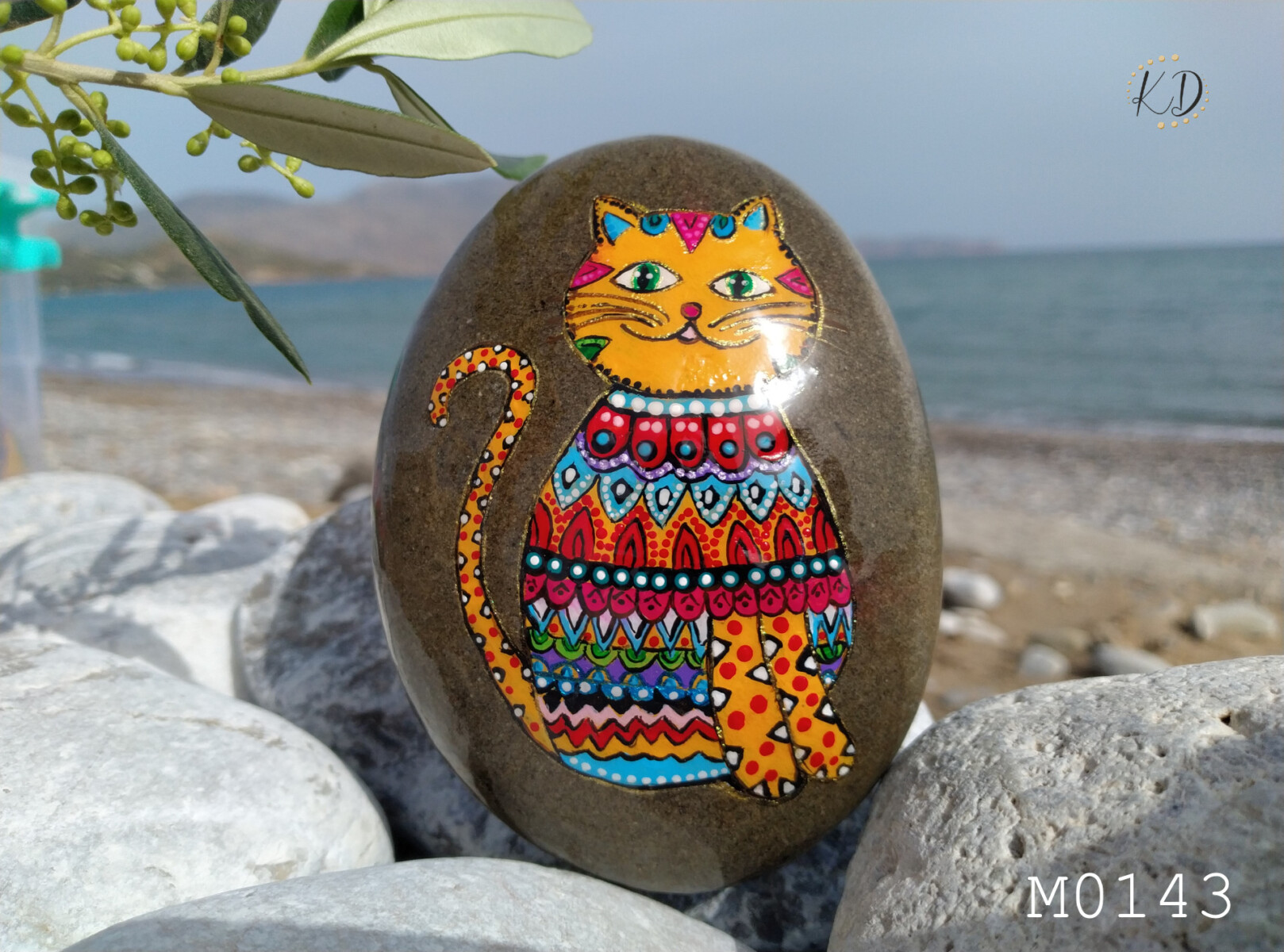 Say hallo to this cheerful little kitty,hand-painted on sea stone!Bursting with bright colors and a big personality,this joyful cat is here to spread smiles and sunshine wherever it goes.With a quirky charm and plenty of cattitude,it’s the purrfect companion for Your desk or shelf.One-of-a-kind,just like every fabulous feline.