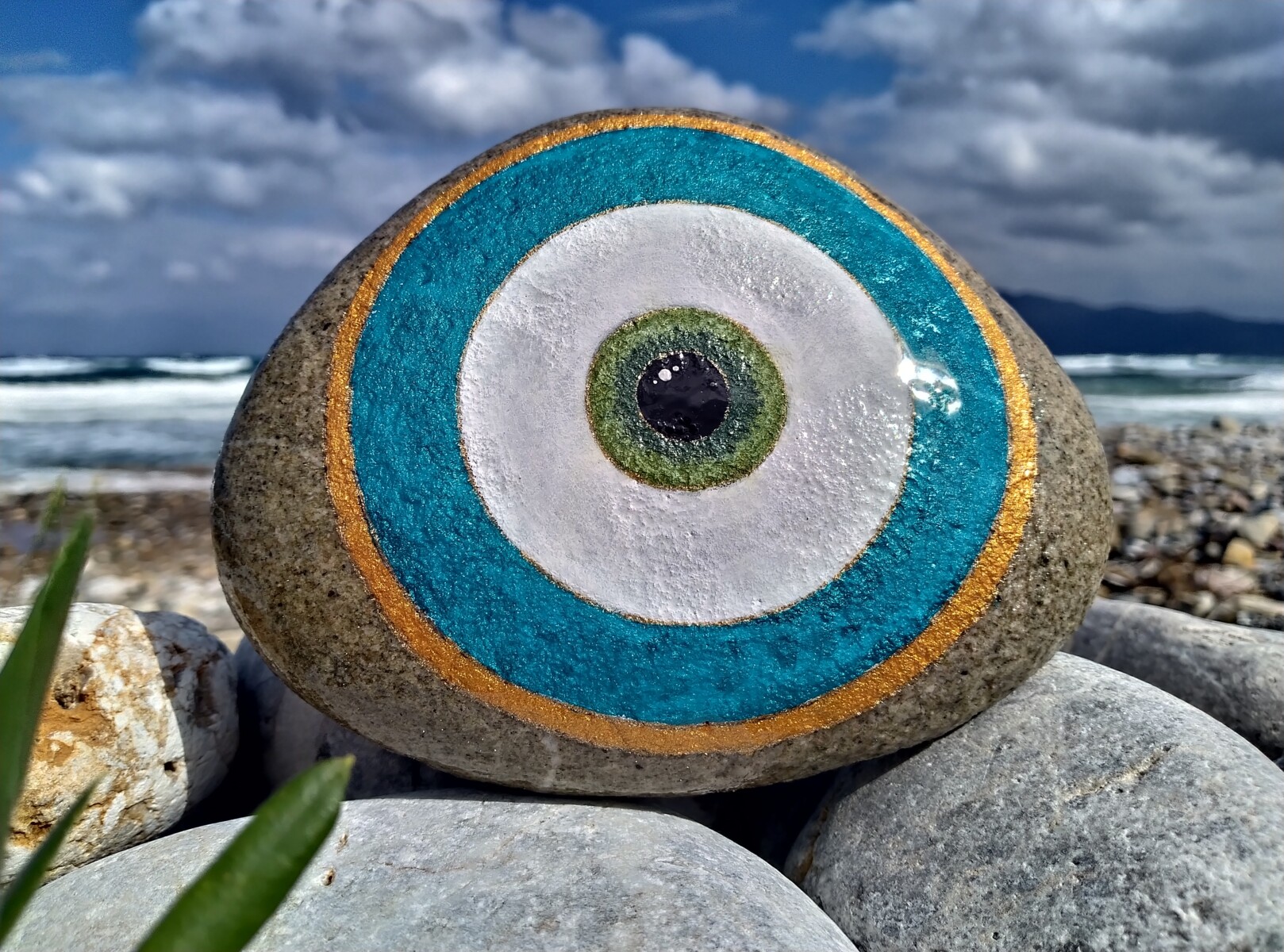 This hand-painted sea stone features the iconic evil eye, inspired by Greek tradition and my love for protective symbols.Using high quality acrylic paints and seald with resin,it combines cultural heritage with artistic expression.