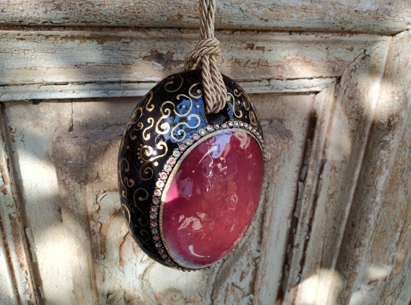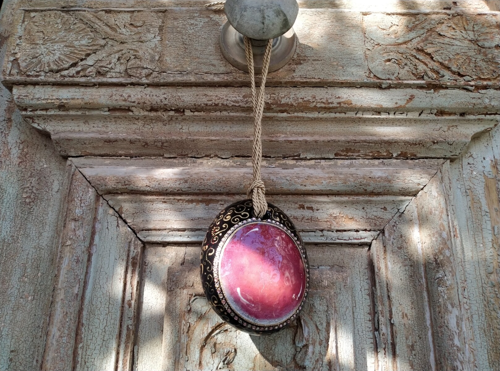 This hand-painted sea stone features a stunning pink jewel,surrounded by delicate,decoratives dots,creating a vibrant and eye-catching focal point.The infricate details and soft hues make it a unique and elegant piece.Can be hang or ldecorate Your desk.
