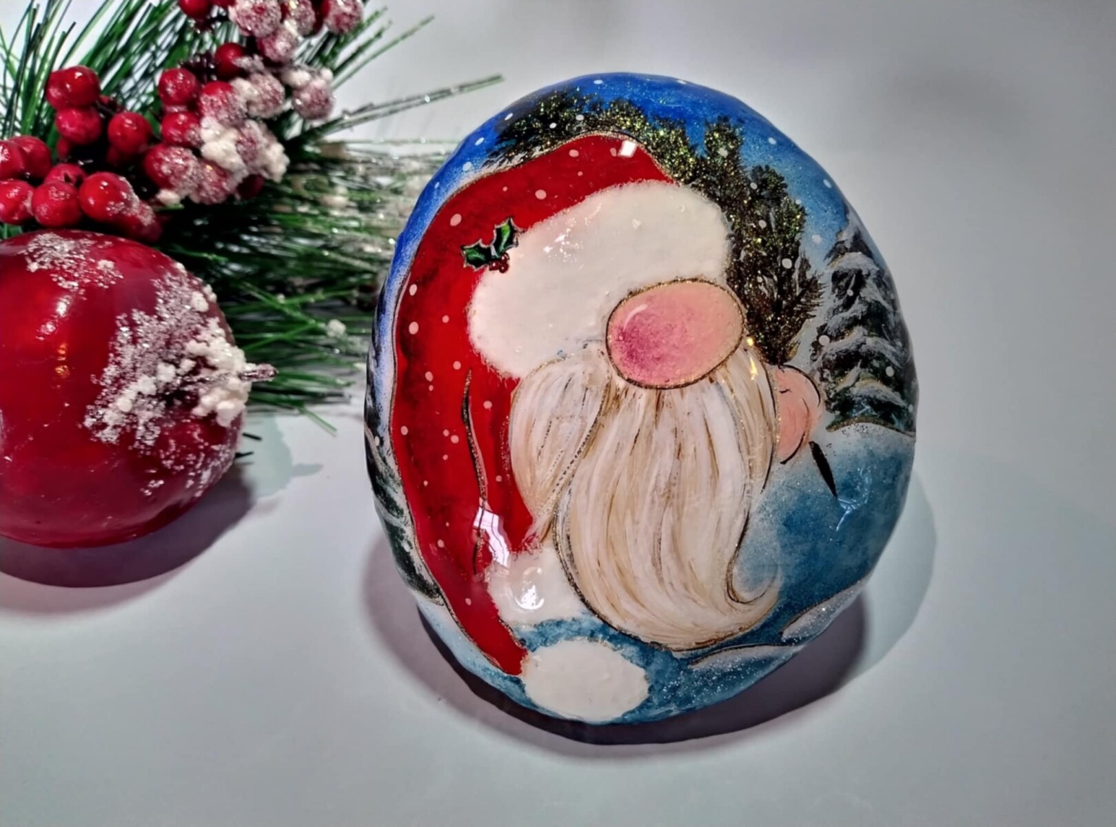 Bring festive cheer to Your holiday decor with this charming hand-painted Santa Claus stone.Perfect as a unique stockinf stuffer,holidaycenterpiece,or collectible keepsake,this whimsical stone adds a touch of magic to any space.